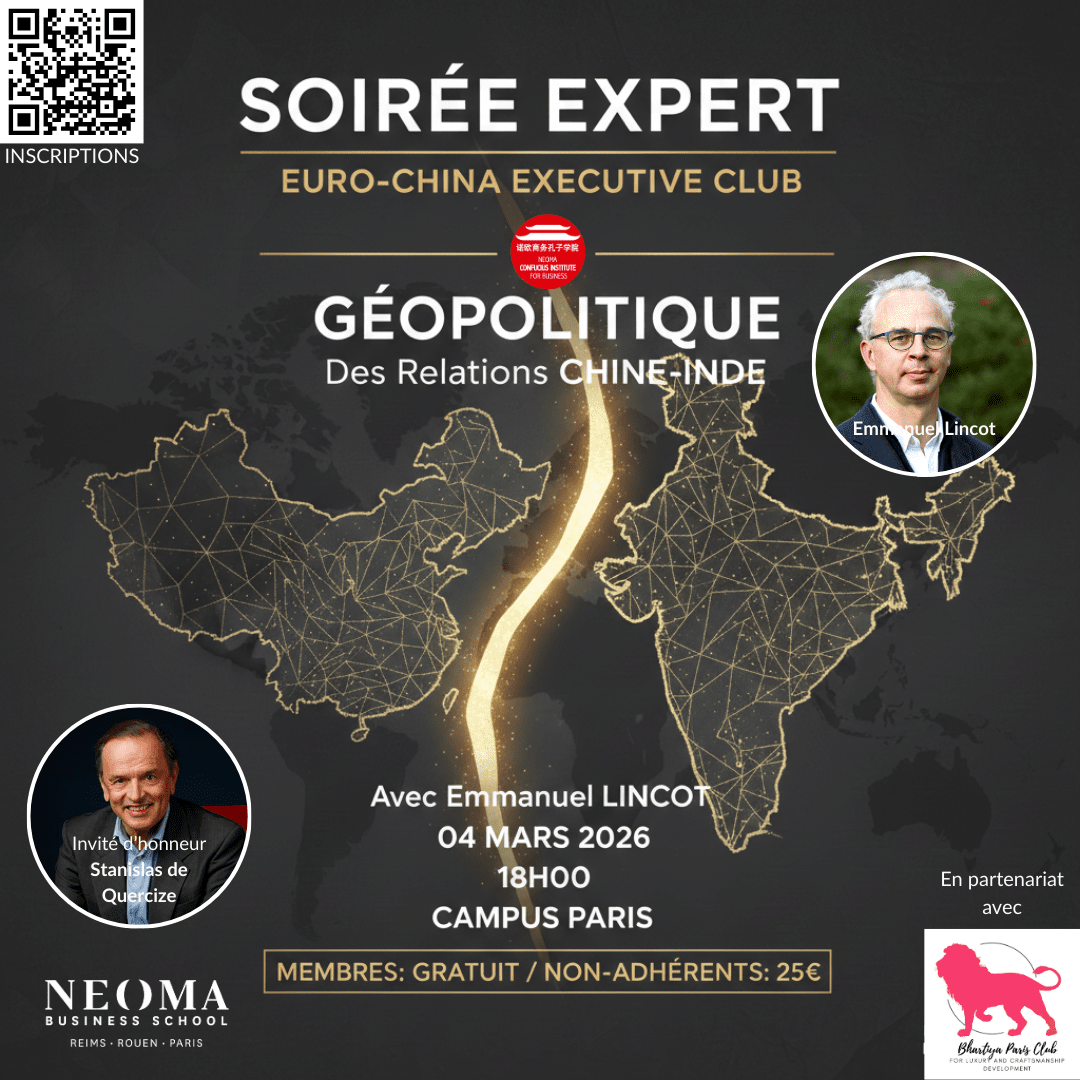 Le monde change et comprendre la dynamique entre la Chine et l’Inde n'est plus une option, mais une nécessité stratégique pour tout décideur. L’Euro-China Executive Club de l’Institut Confucius de NEOMA Business School, en partenariat avec le Bhartiya Paris Club, vous invite à une conférence exceptionnelle sur son campus parisien.