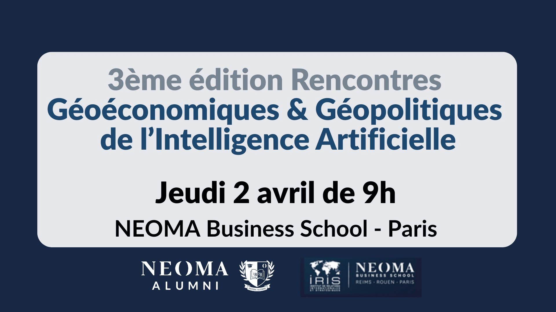 L’IRIS et NEOMA Business School, en partenariat avec Diplomatie Magazine et Courrier international, vous invitent à la 3e édition des Rencontres géoéconomiques et géopolitiques, autour des enjeux de l’intelligence artificielle.