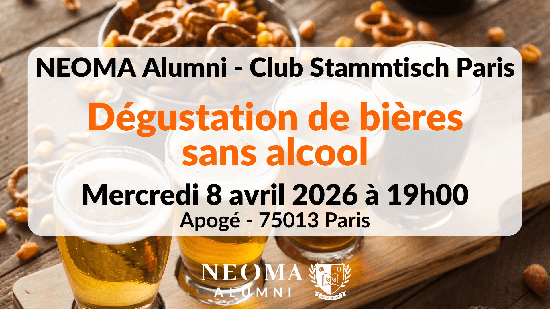 Le club Stammtisch Paris vous invite à une soirée découverte consacrée aux bières sans alcool, dans le cadre chaleureux de la cave à vin L’Apogé, tenue par Jérôme Gaiarin (PGE 94).
