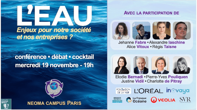 Le collectif NEOMA Alumni Engaged vous invite à une soirée conférence cocktail networking dédiée à ce thème essentiel : L’eau, enjeux pour la société et nos entreprises.