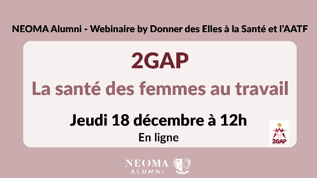 NEOMA Alumni, adhérente de 2GAP vous propose dans le cadre des jeudis de 2GAP, un webinaire en partenariat avec le réseau Donner des Elles à la Santé et L'Association des Administrateurs Territoriaux de France (AATF) parrainé par 2GAP :